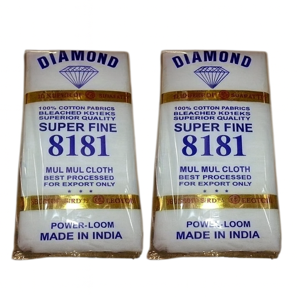 Mulmul cloth is woven to high standards in India, focusing on the textile expertise of Gujarat and Ahmedabad. With a width of 30 inches and generous 5-yard length per packet, this cloth is ultra-soft, lightweight, and has a superfine texture, making it ideal for applications in cleaning, dusting, polishing, or as a soft lining in garments.